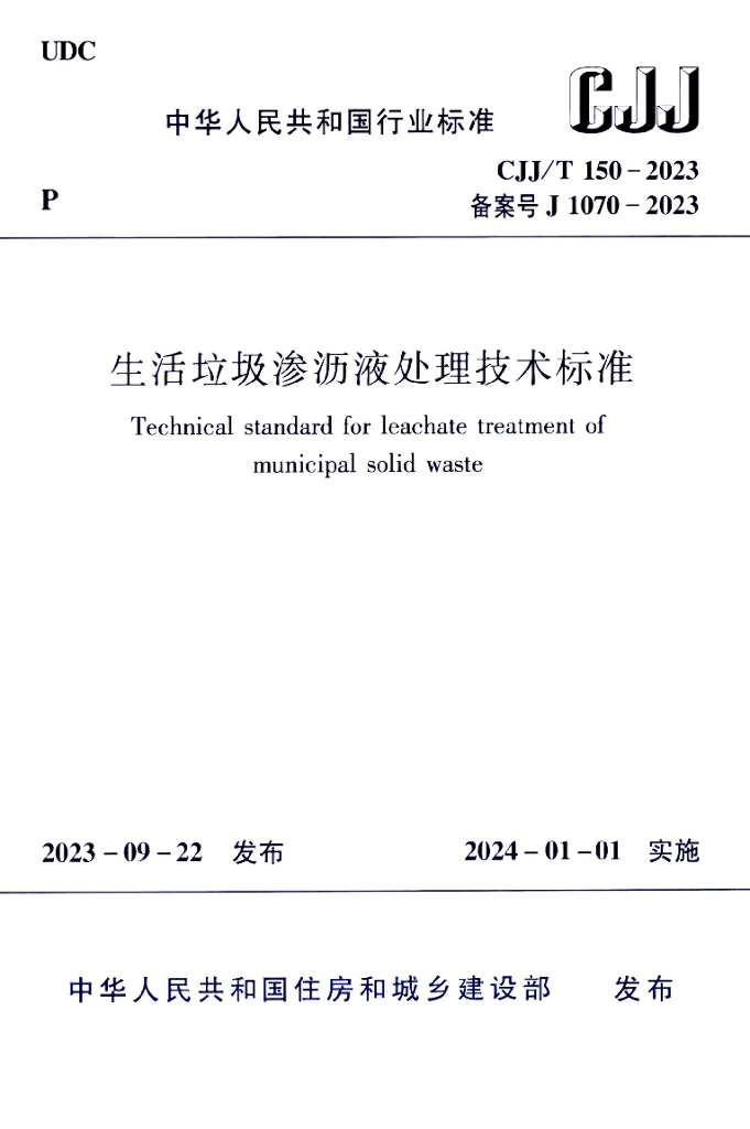 CJJ/T 150-2023 生活垃圾渗沥液处理技术标准