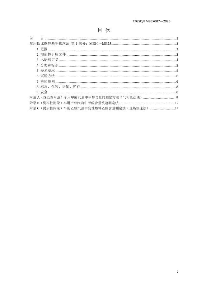 T/GSQN M85X007-2025 车用低比例醇基生物汽油 第1部分:ME10~ME25