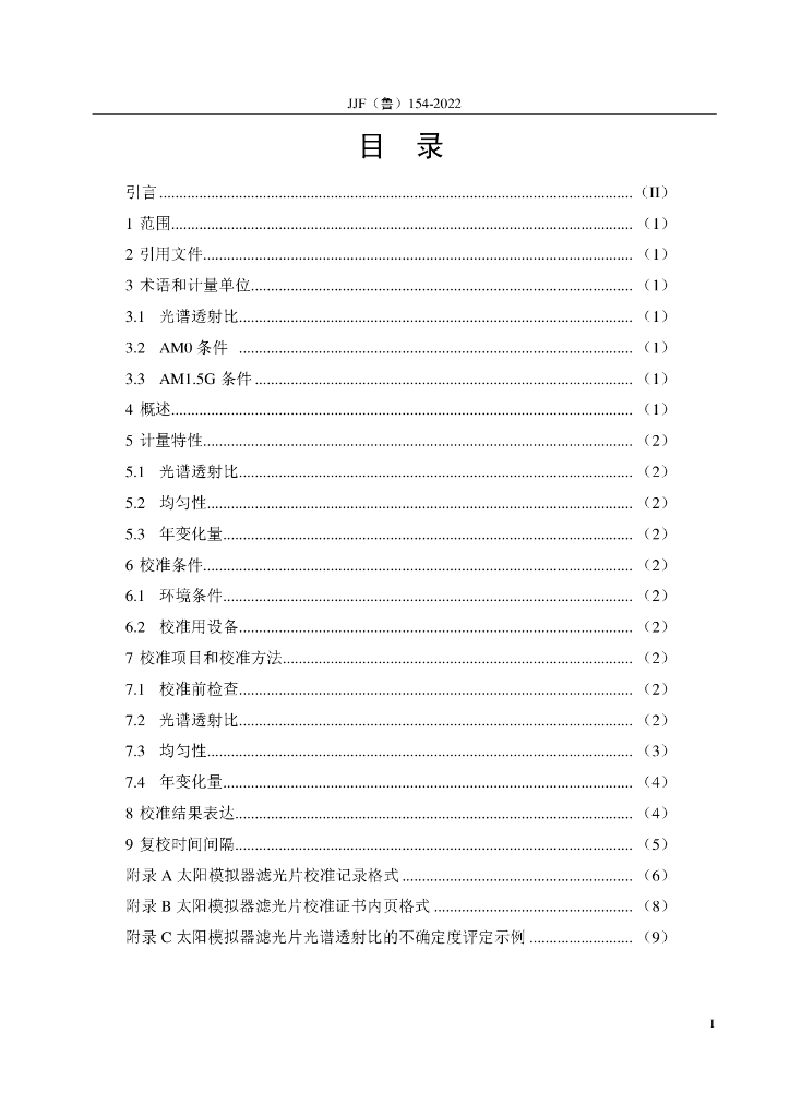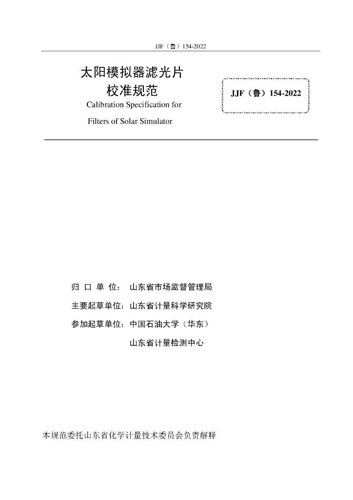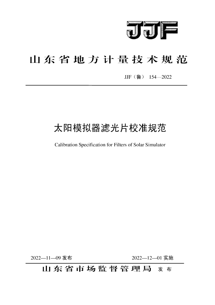 JJF(鲁)154-2022 太阳模拟器滤光片校准规范