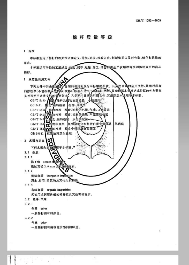 GH/T 1052-2009 棉籽质量等级