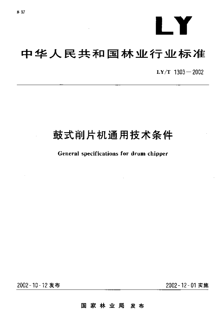 LY/T 1303-2002 鼓式削片机通用技术条件