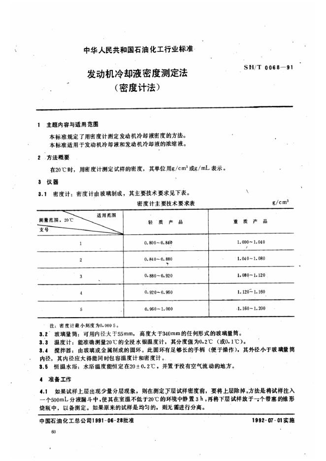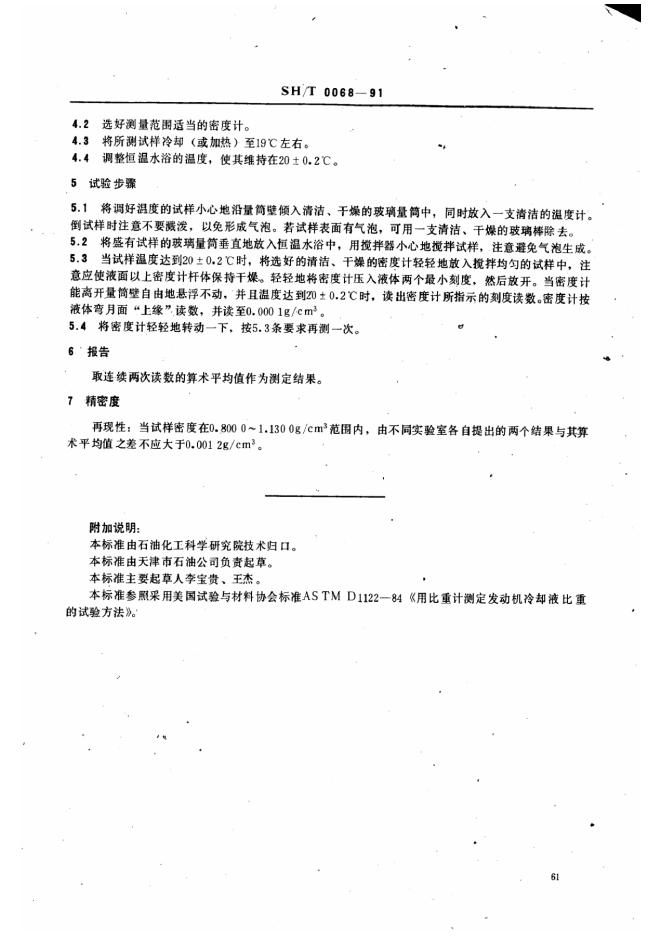 SH/T 0068-1991 发动机冷却液密度测定法密度计法