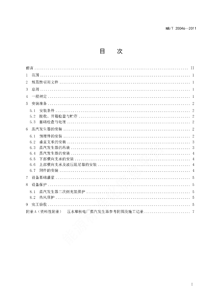 NB/T 20046-2011 压水堆核电厂蒸汽发生器安装及验收技术规程