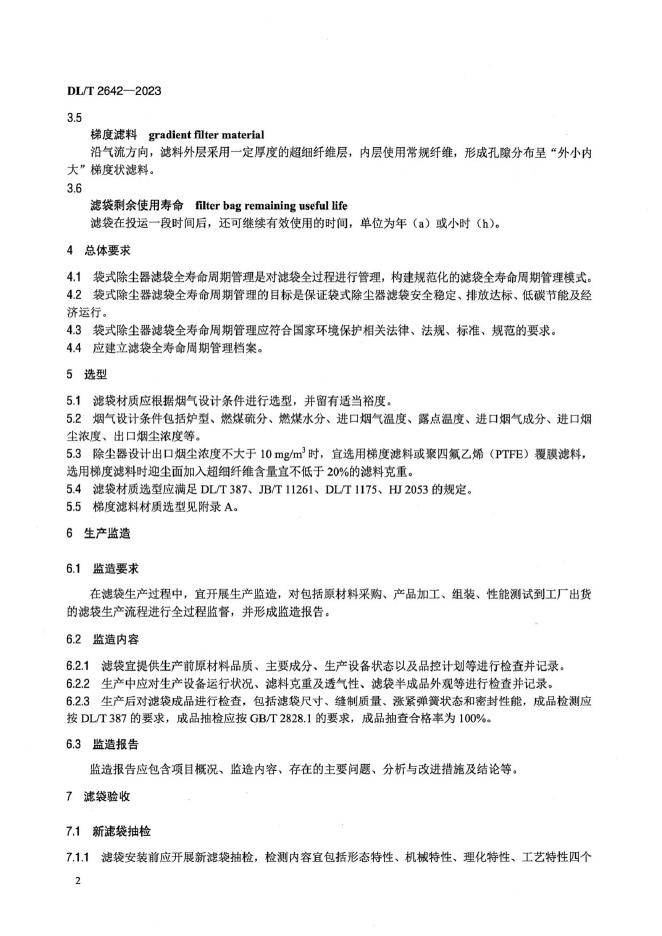 DL/T 2642-2023 燃煤电厂袋式除尘器滤袋全寿命周期管理技术导则