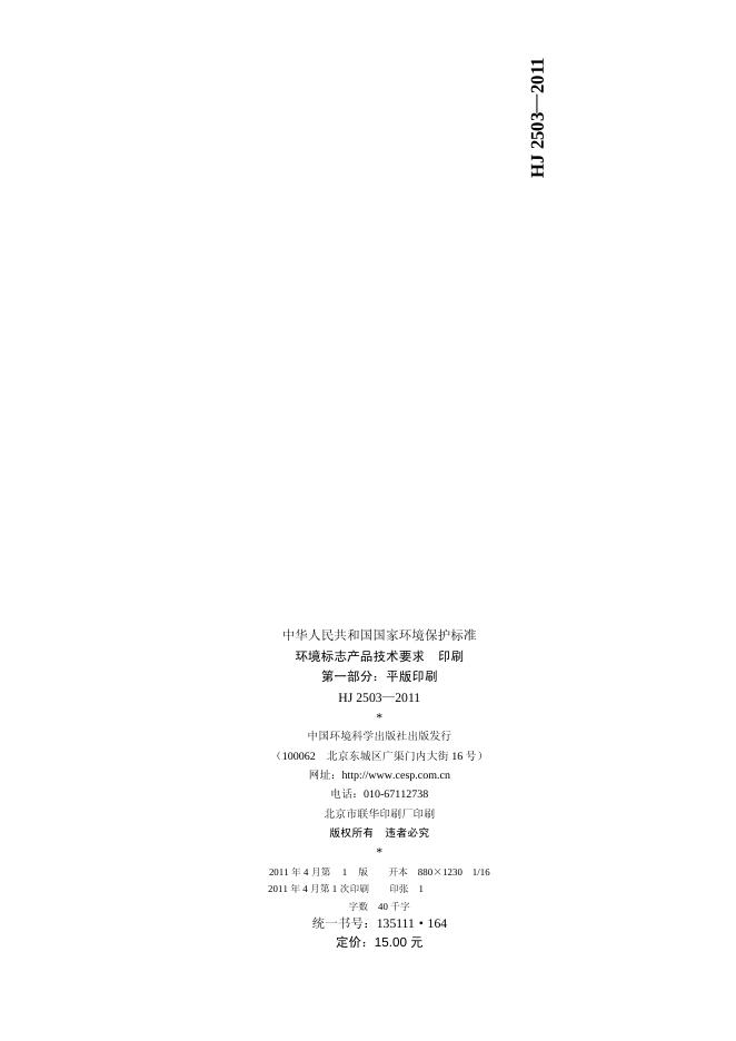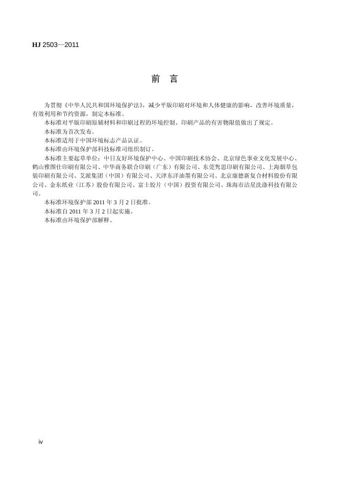 HJ 2503-2011 环境标志产品技术要求 印刷 第一部分:平版印刷