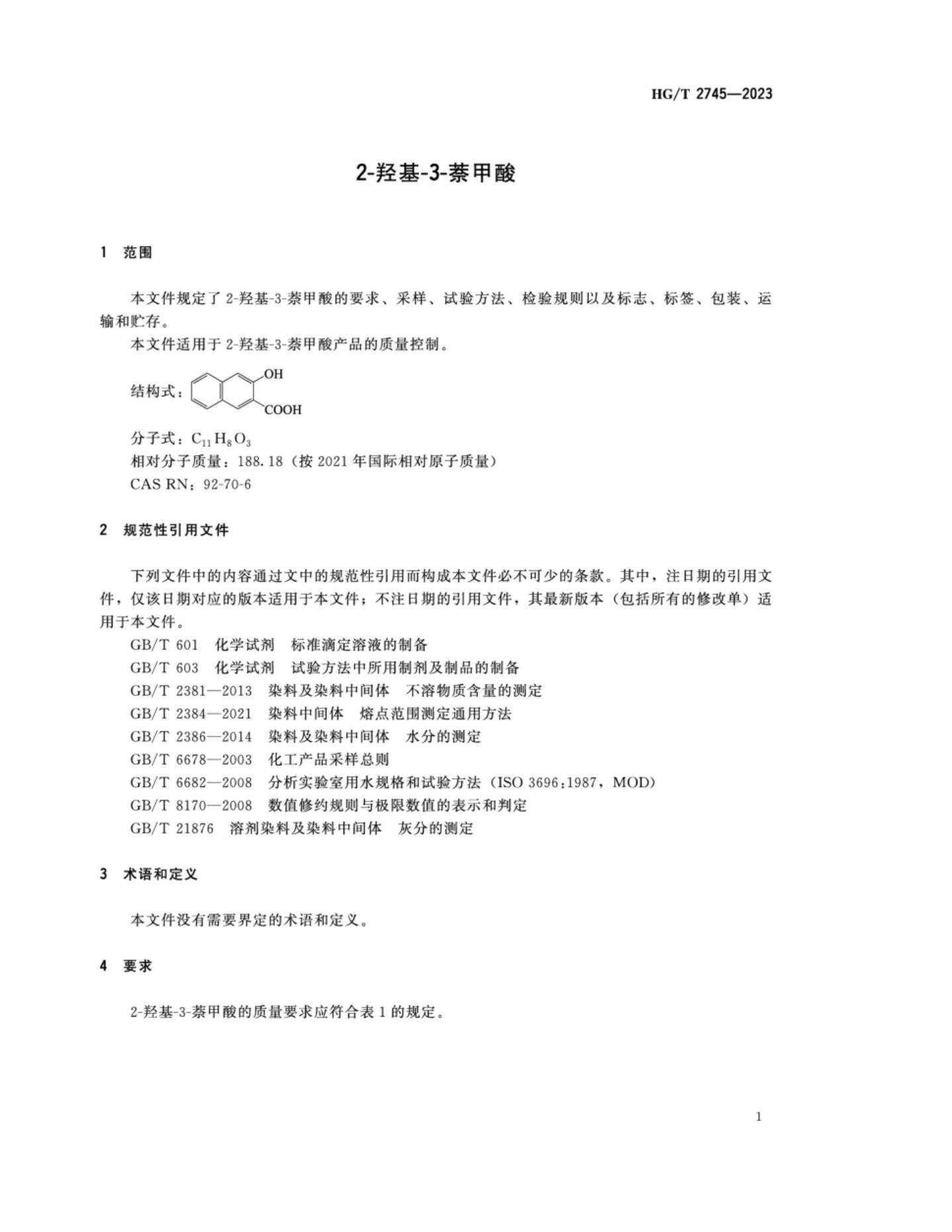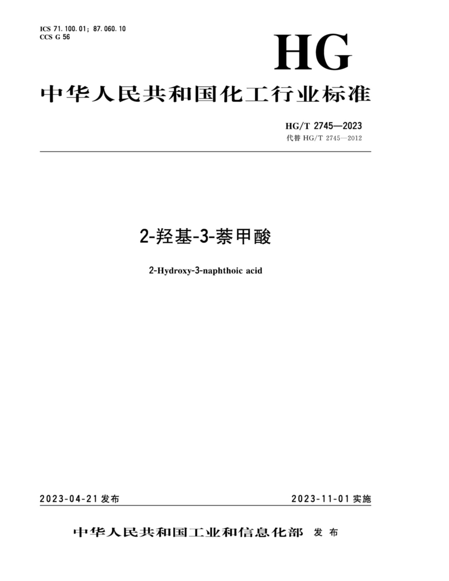 HG/T 2745-2023 2-羟基-3-萘甲酸