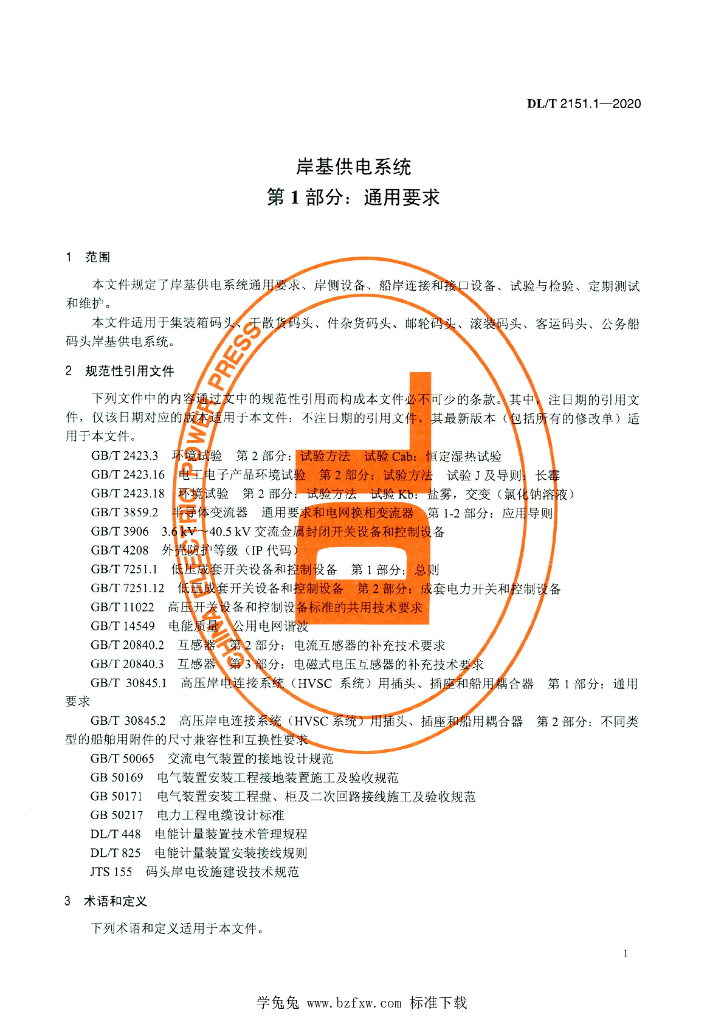 DL/T 2151.1-2020 岸基供电系统 第1部分:通用要求