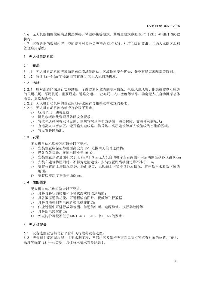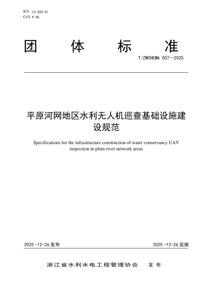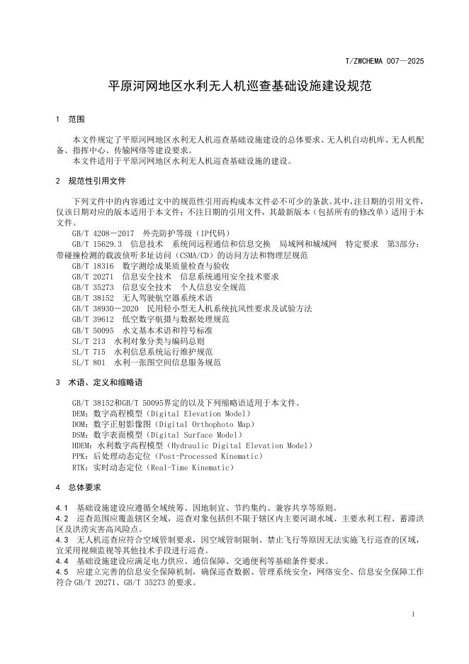 T/ZWCHEMA 007-2025 平原河网地区水利无人机巡查基础设施建设规范