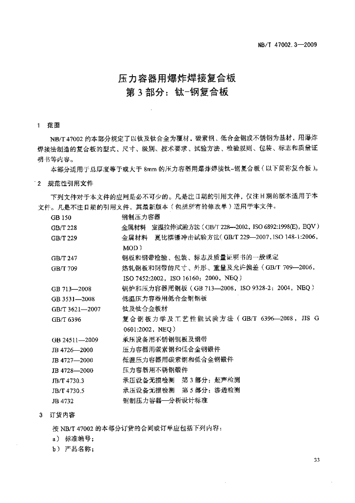 NB/T 47002.3-2009 压力容器用爆炸焊接复合板 第3部分:钛-钢复合板