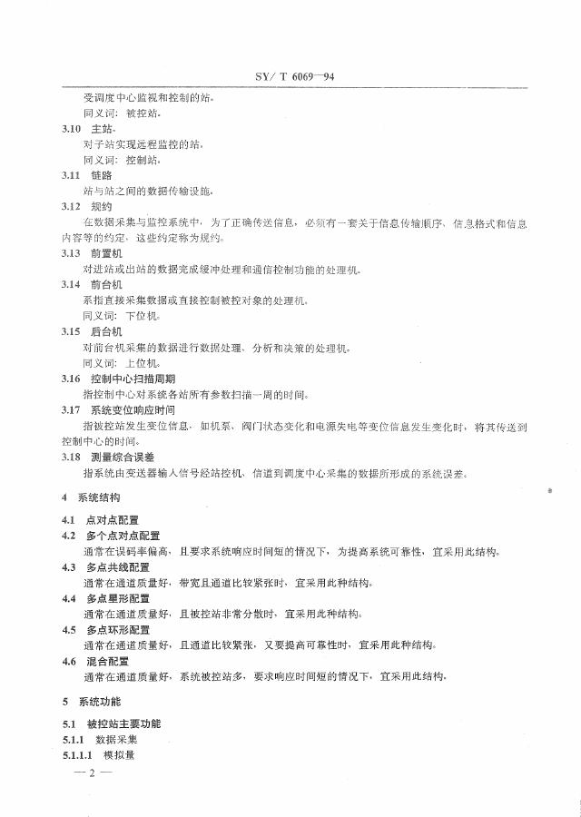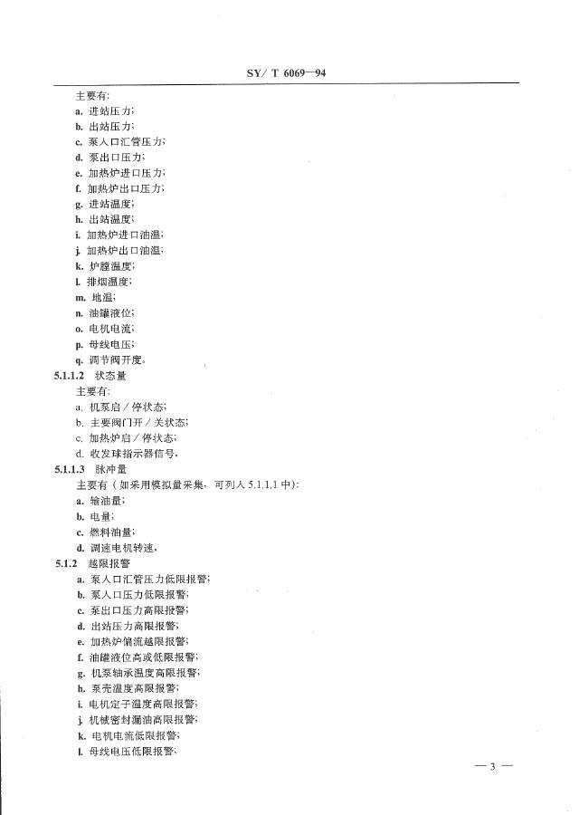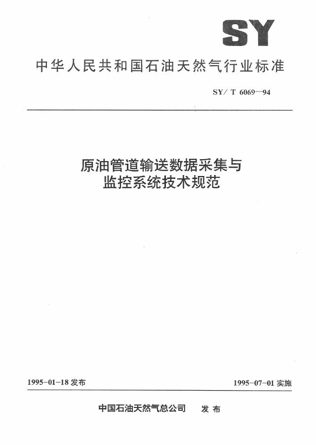 SY/T 6069-1994 原油管道输送数据采集与监控系统技术规范