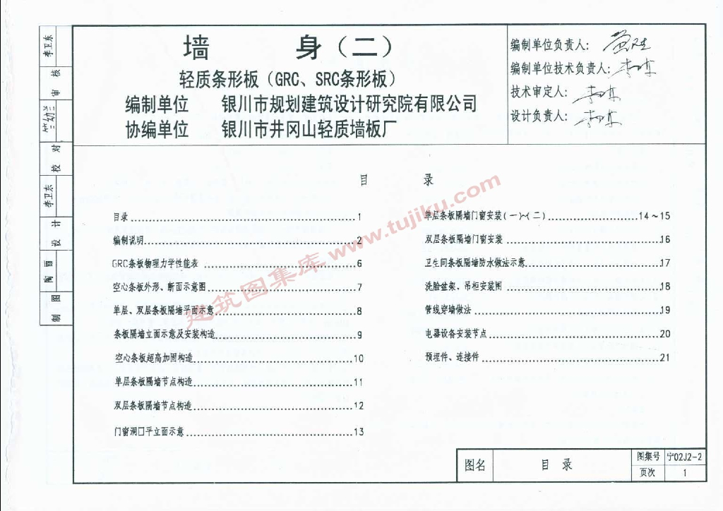 宁02J2-2 墙身(二)轻质条形板(GRC、SRC条形板)图集