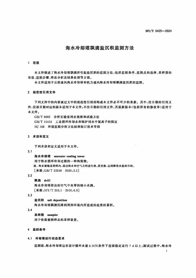 HY/T 0425-2024 海水冷却塔飘滴盐沉积监测方法