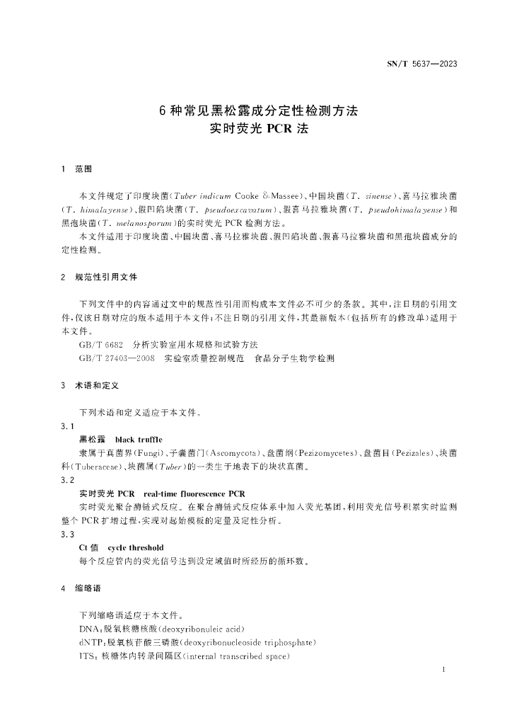 SN/T 5637-2023 6种常见黑松露成分定性检测方法 实时荧光PCR法