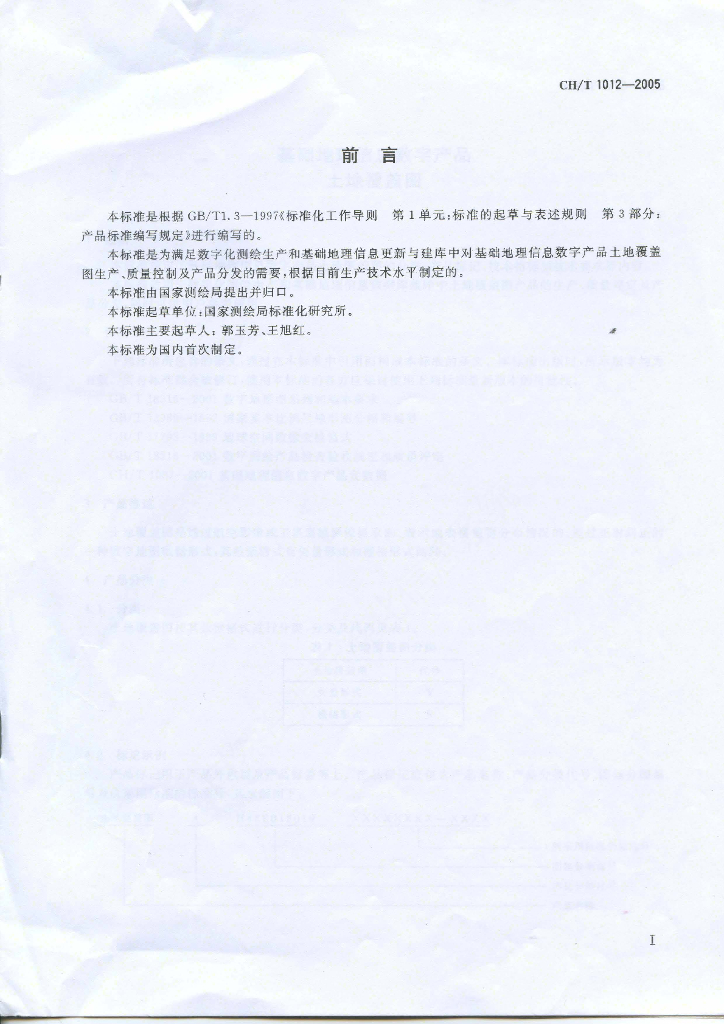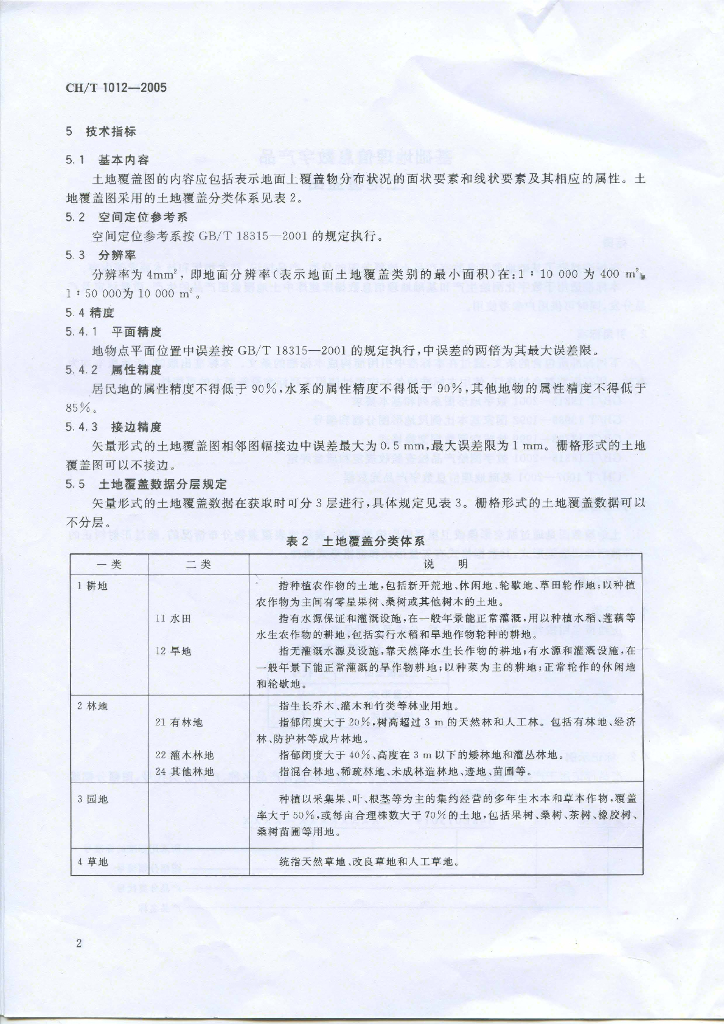 CH/T 1012-2005 基础地理信息数字产品 土地覆盖图