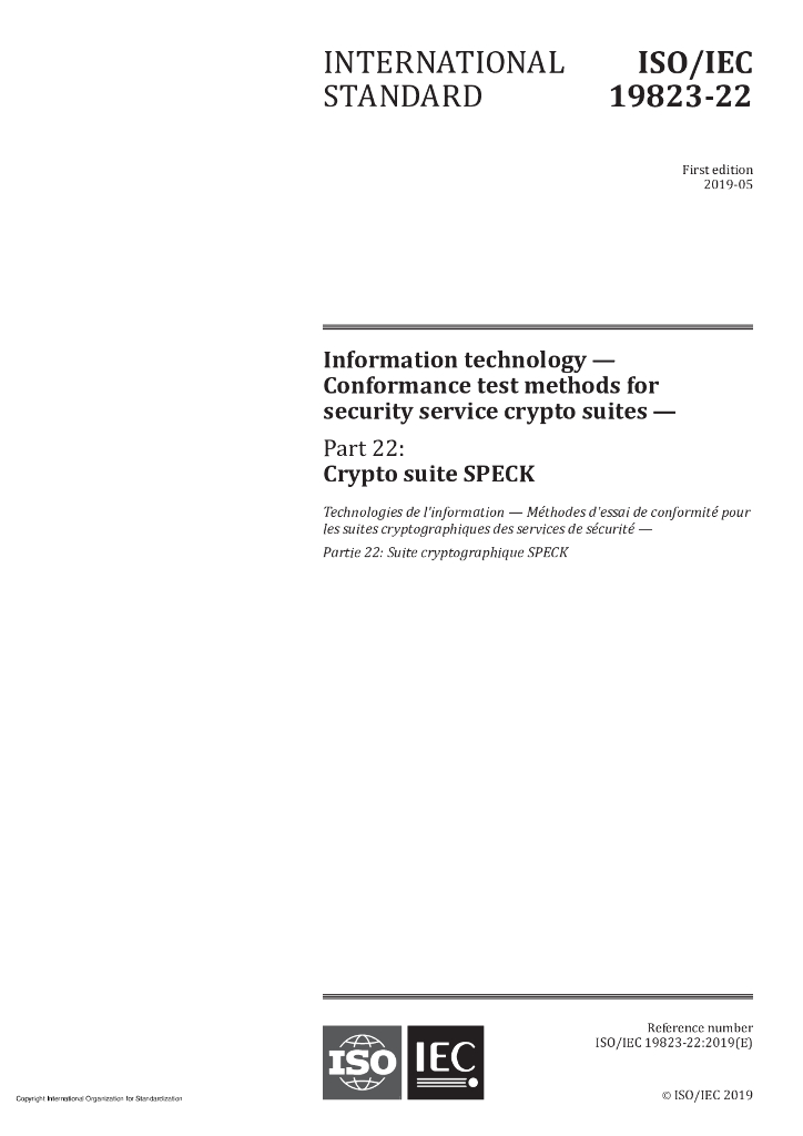 ISO/IEC 19823-22-2019 信息技术 安全服务密码套件一致性测试方法 第22部分:密码套件规范