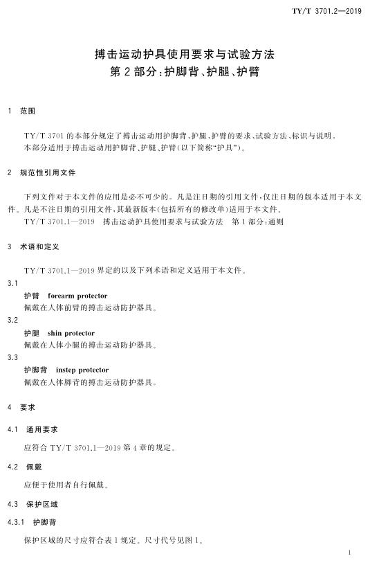 TY/T 3701.2-2019 搏击运动护具使用要求与试验方法 第2部分:护脚背、护腿、护臂