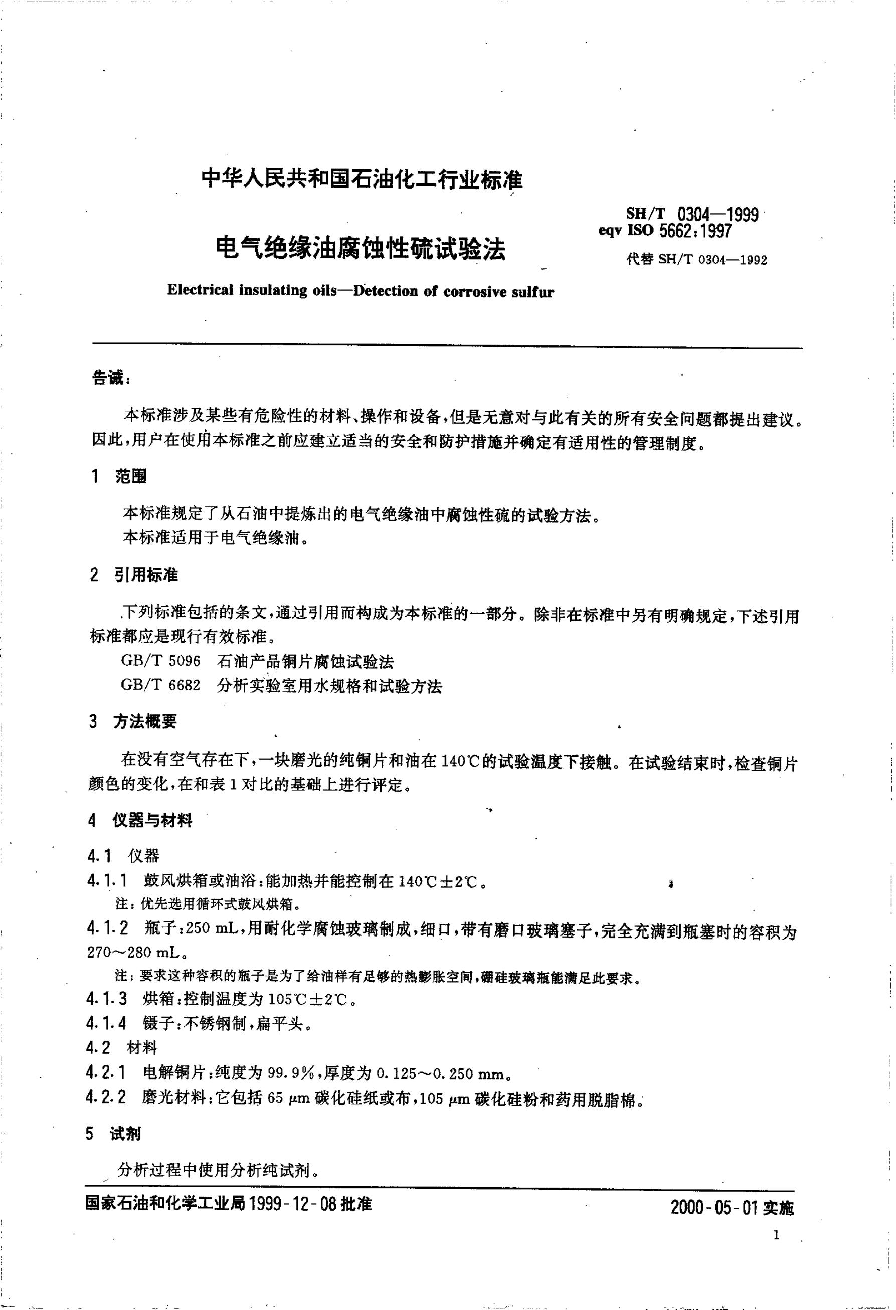 SH/T 0304-1992 电气绝缘油腐蚀性硫试验法