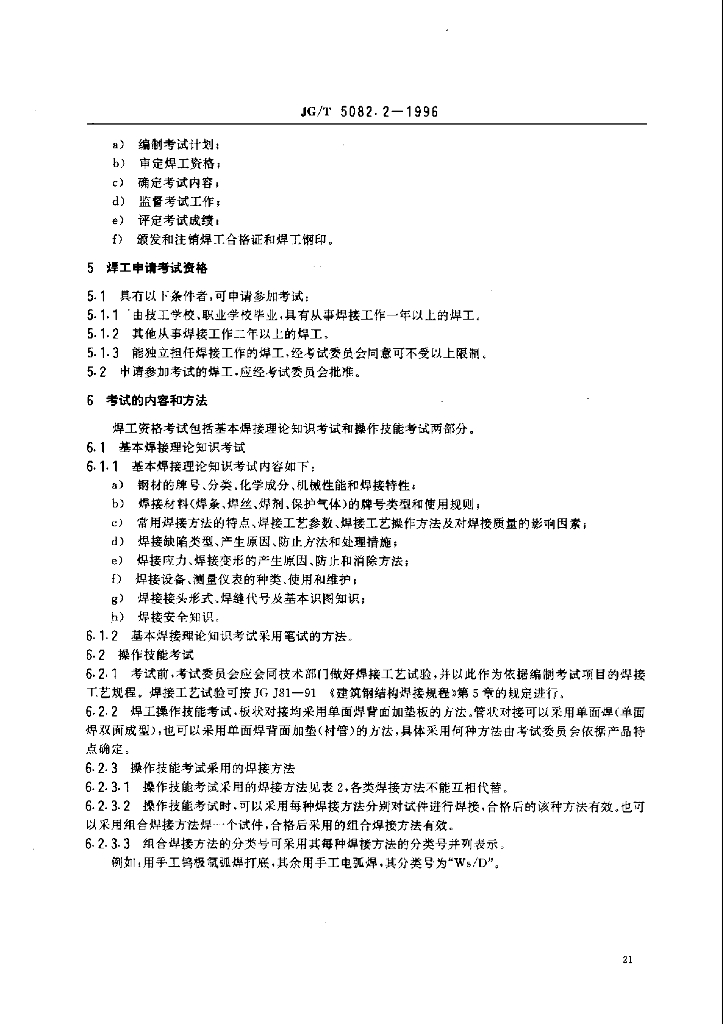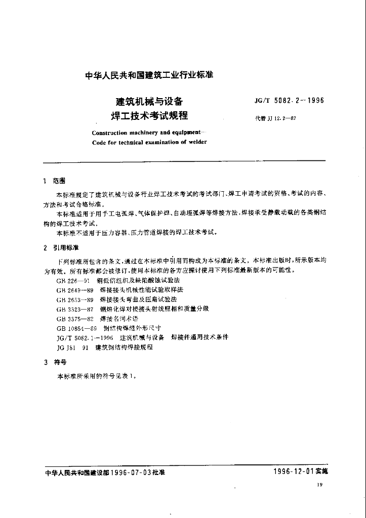JG/T 5082.2-1996 建筑机械与设备 焊工技术考试规程