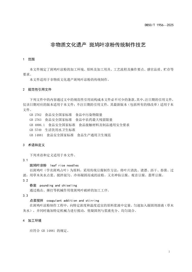 DB50/T 1956-2025 非物质文化遗产 斑鸠叶凉粉传统制作技艺
