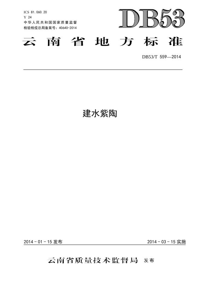云南省产品质量监督检验研究院、云南省紫陶研究会、建水县质量技术监督局、建水县紫陶产业发展中心、建水县紫陶协会、建水县紫陶研究会
