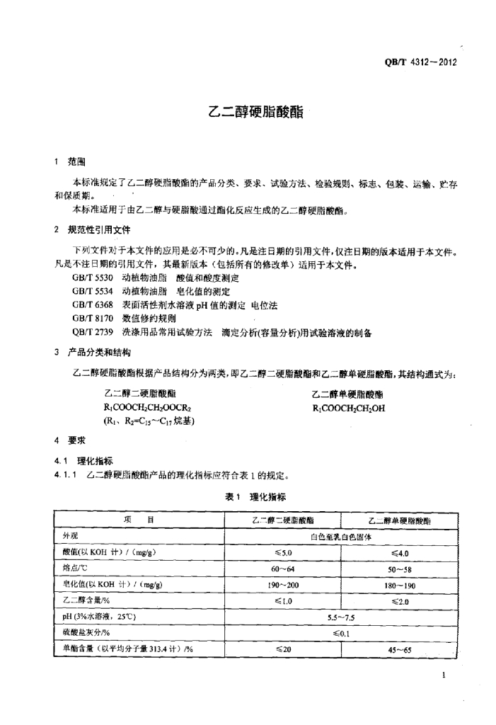 QB/T 4312-2012 乙二醇硬脂酸酯