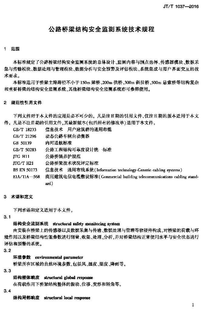 JT/T 1037-2016 公路桥梁结构安全监测系统技术规程