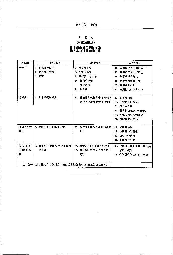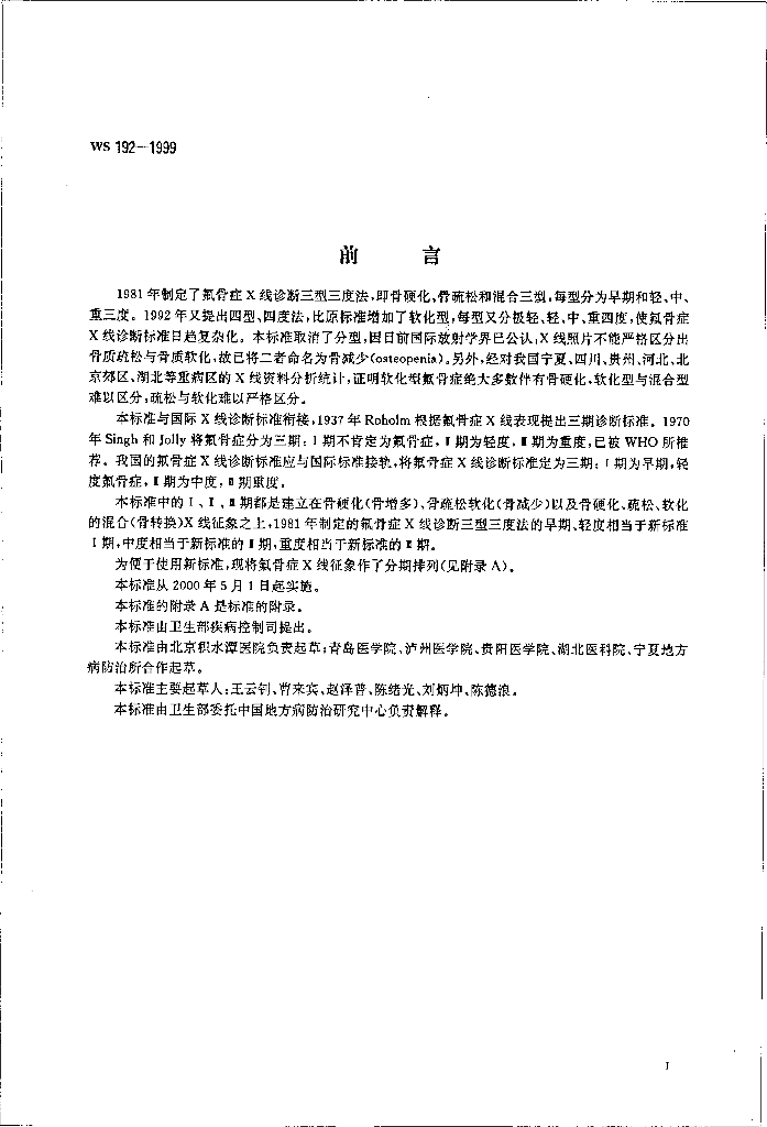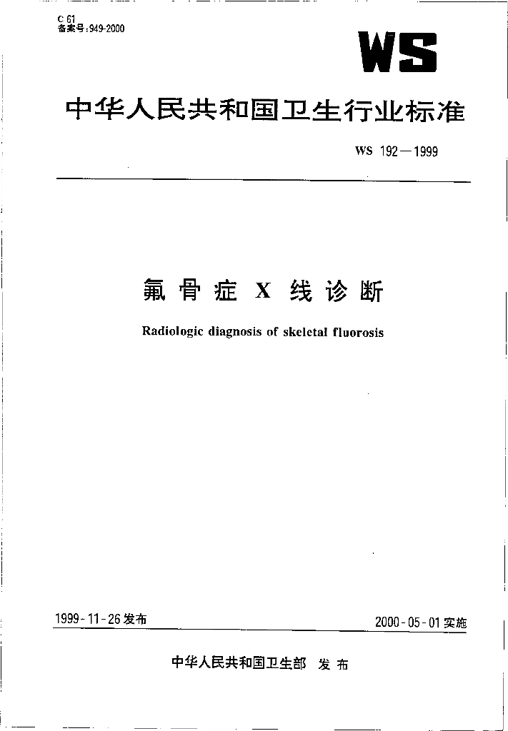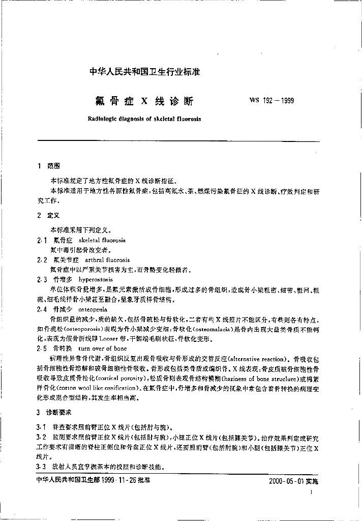 WS 192-1999 氟骨症Χ线诊断