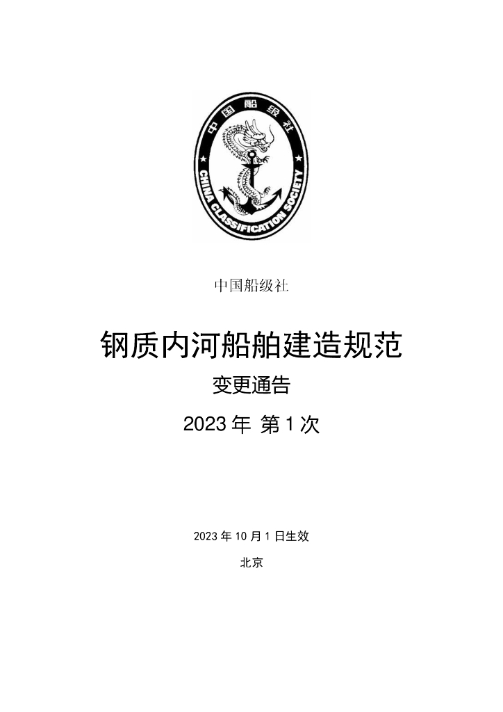 中国船级社(CCS):钢质内河船舶建造规范-2023年第1次变更通告
