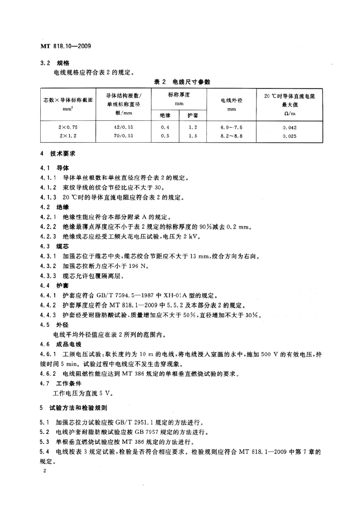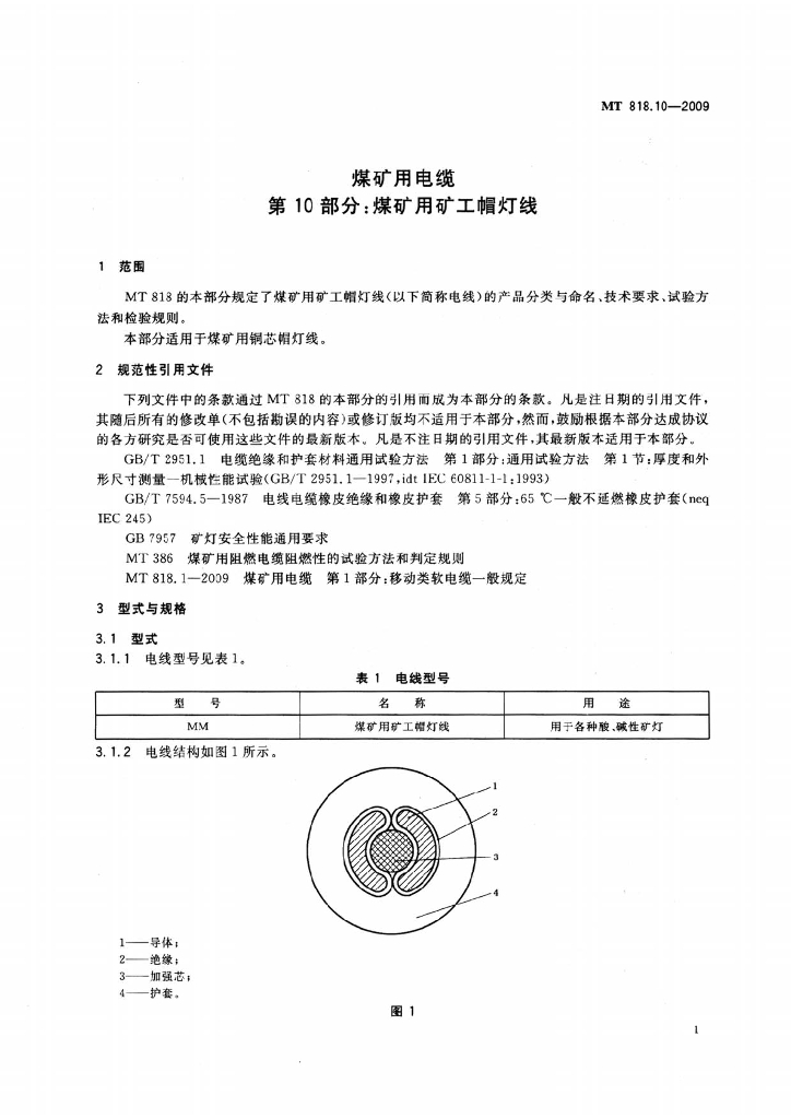 MT 818.10-2009 煤矿用电缆 第10部分:煤矿用矿工帽灯线