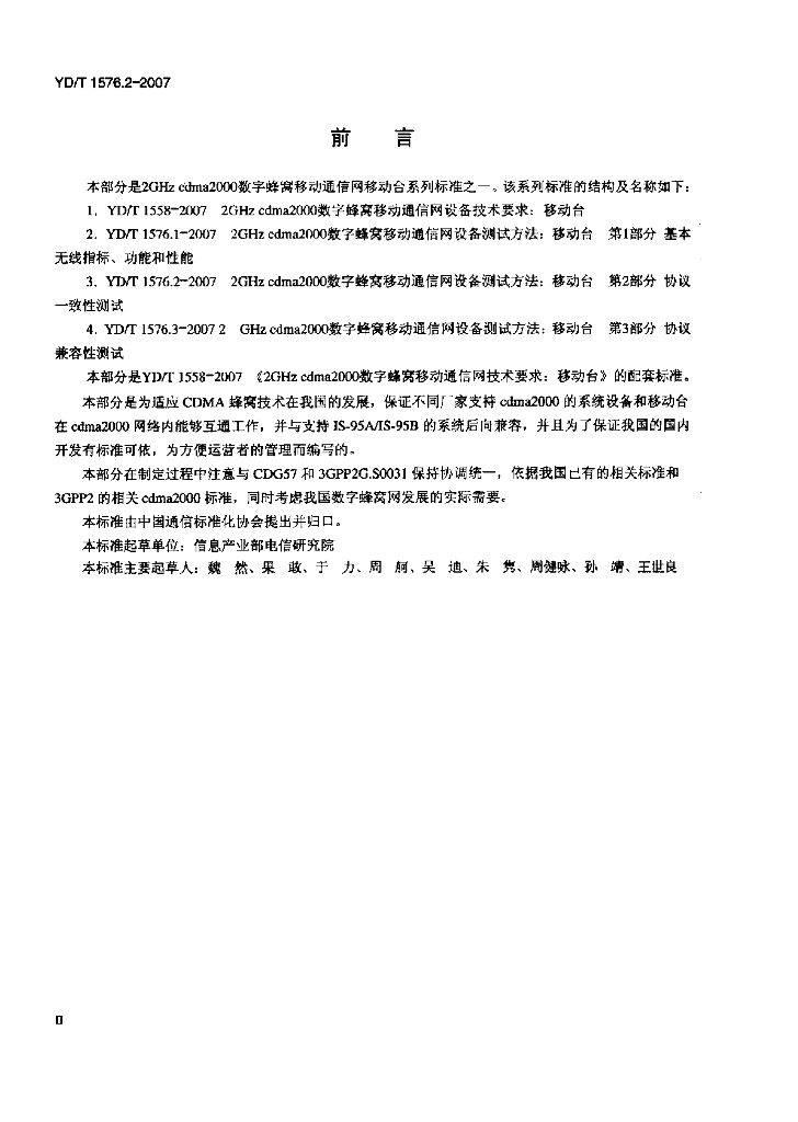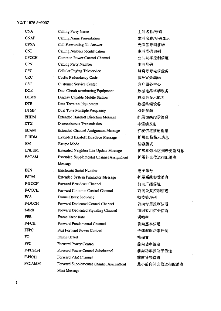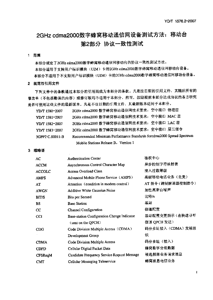 YD/T 1576.2-2007 2GHz cdma2000 数字蜂窝移动通信网设备测试方法:移动台 第2部分:协议一致性测试