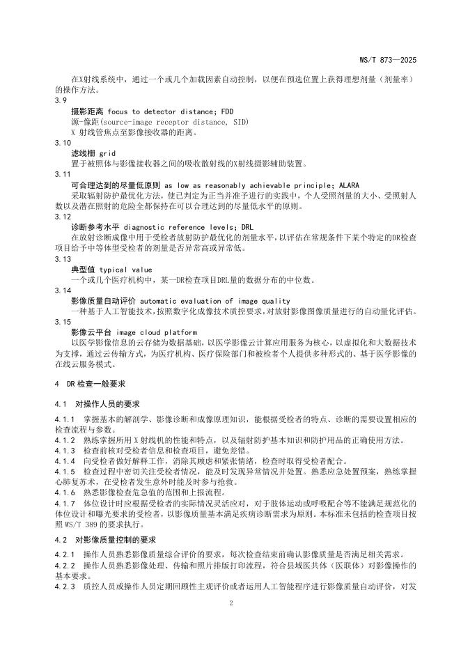 WS/T 873-2025 乡镇卫生院和社区卫生服务中心DR常见检查操作标准