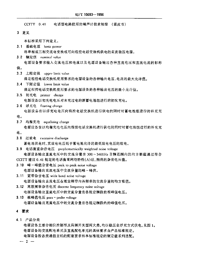 SJ/T 10693-1996 程控电话交换机电源通用技术条件