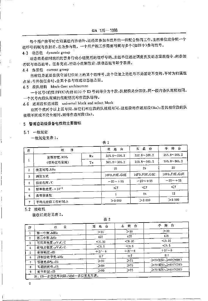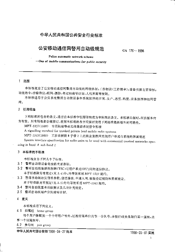 GA 176-1998 公安移动通信网警用自动级规范