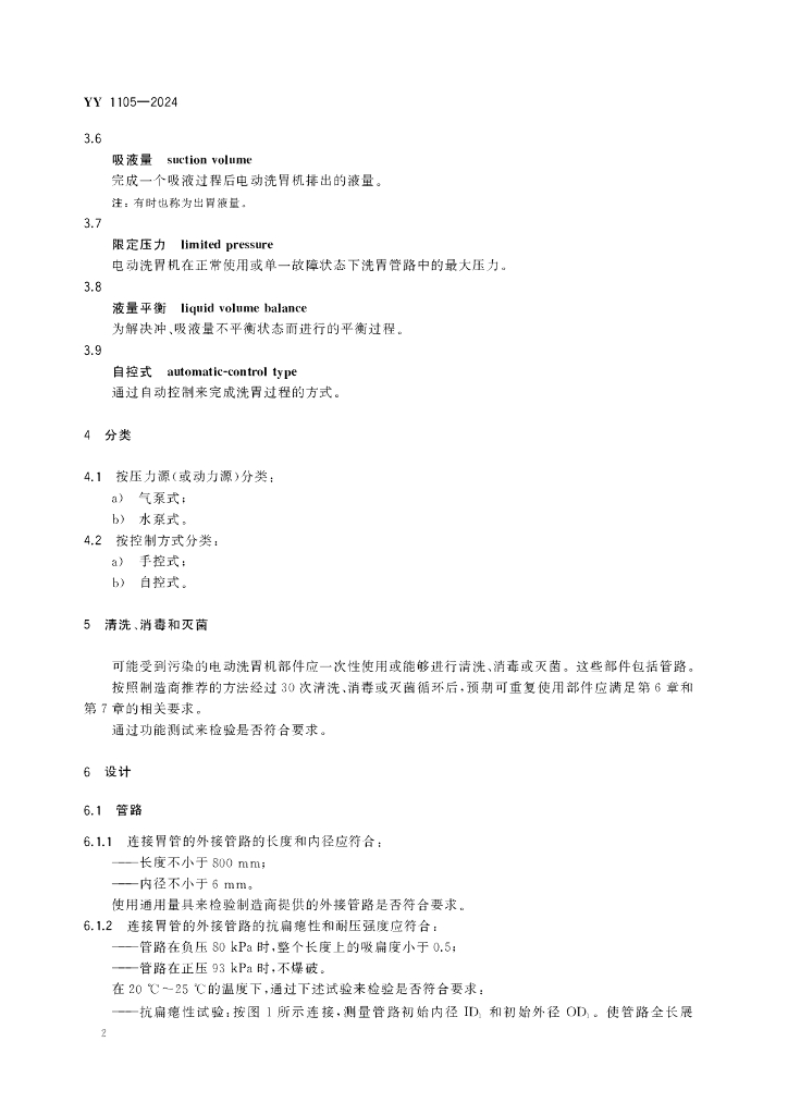 YY 1105-2024 电动洗胃机