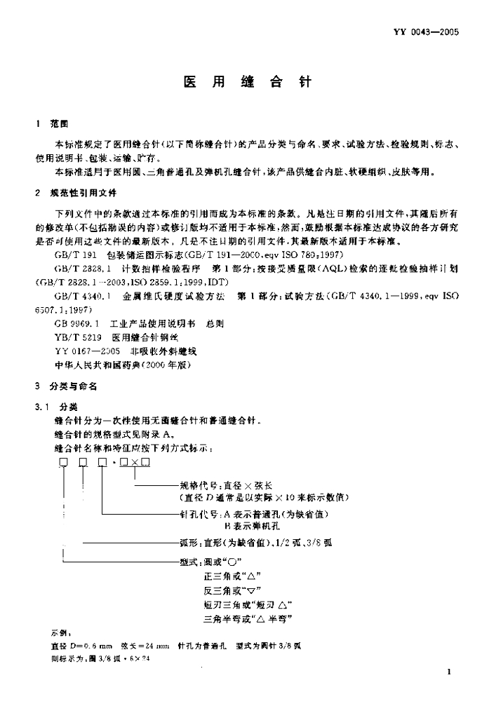 YY 0043-2005 医缝合针