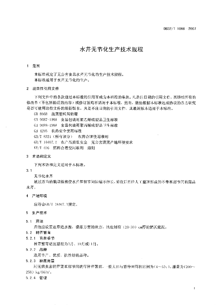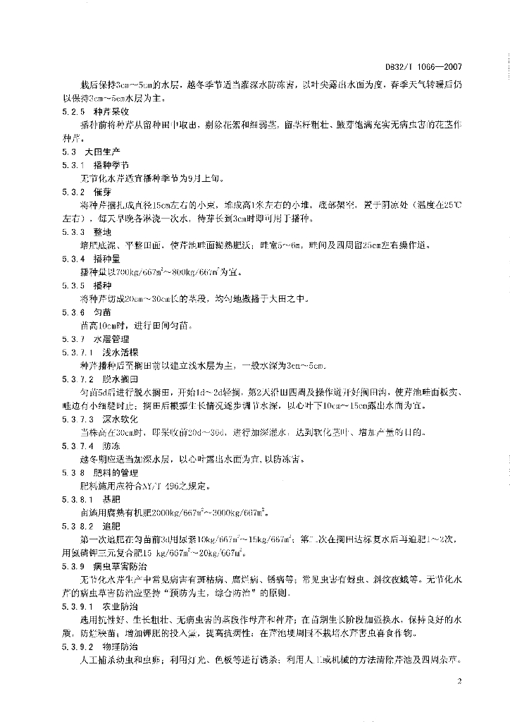 DB32/T 1066-2007 水芹无节化生产技术规程