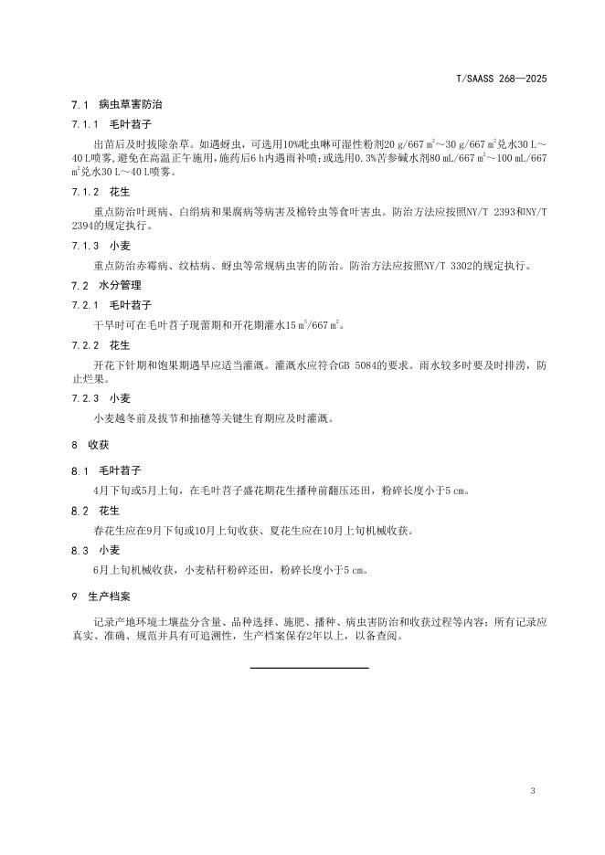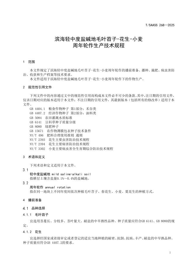 T/SAASS 268-2025 滨海轻中度盐碱地毛叶苕子-花生-小麦 周年轮作生产技术规程