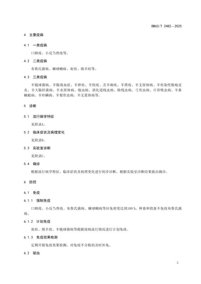 DB63/T 2482-2025 藏羊疫病防控技术规范
