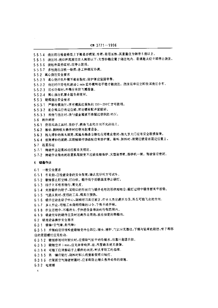 CB 3771-1996 铸锻作业安全规程