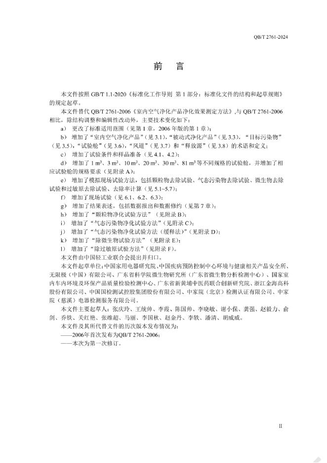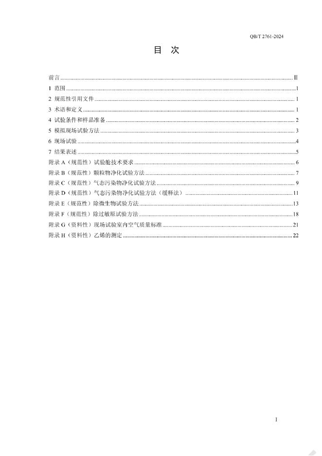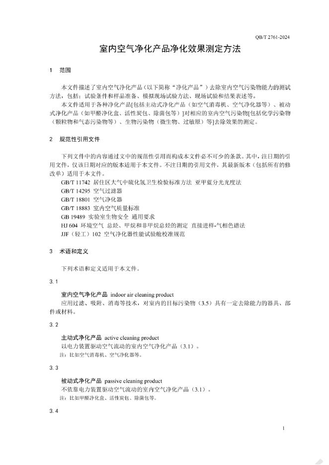 QB/T 2761-2024 室内空气净化产品净化效果测定方法