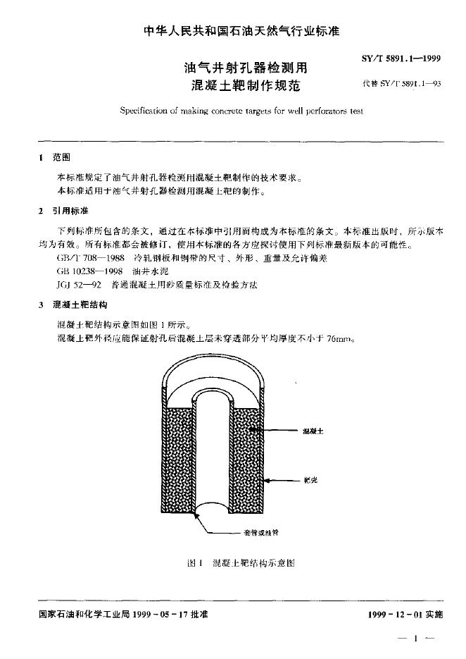SY/T 5891.1-1993 油气井射孔弹器检测用混凝土靶制作规范