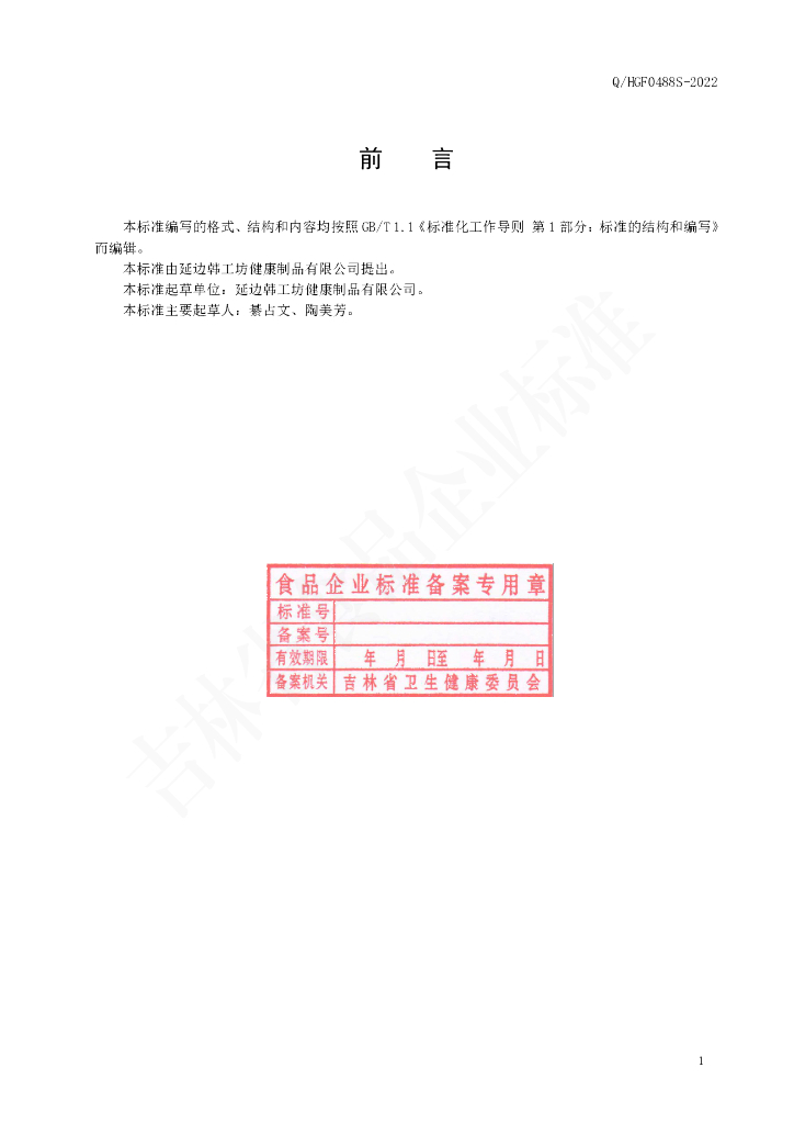 Q/HGF 0488S-2022 阿拉伯半乳聚糖固体饮料