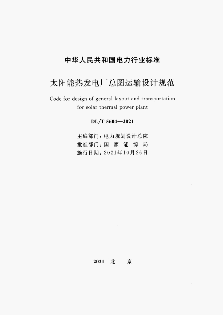 DL/T 5604-2021 太阳能热发电厂总图运输设计规范