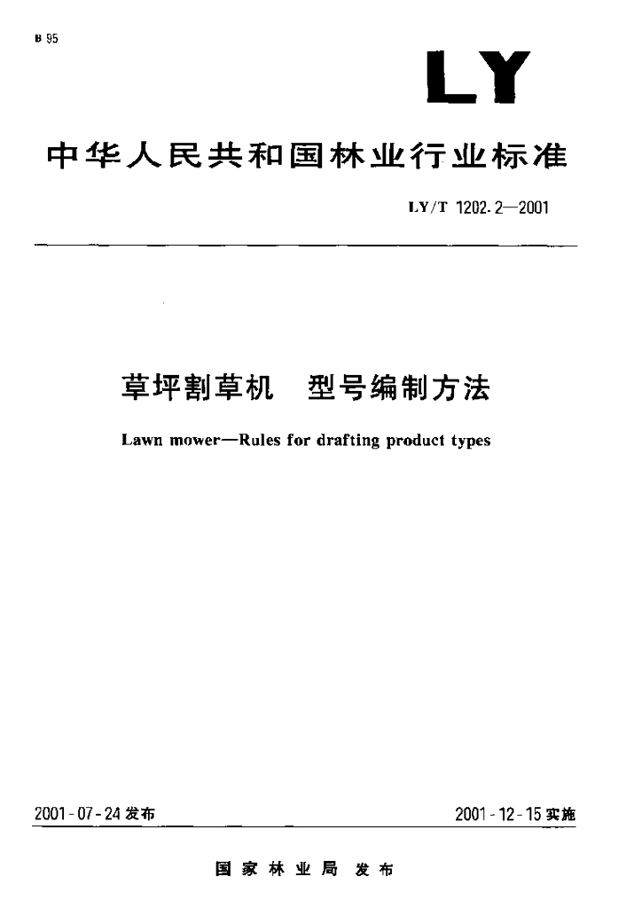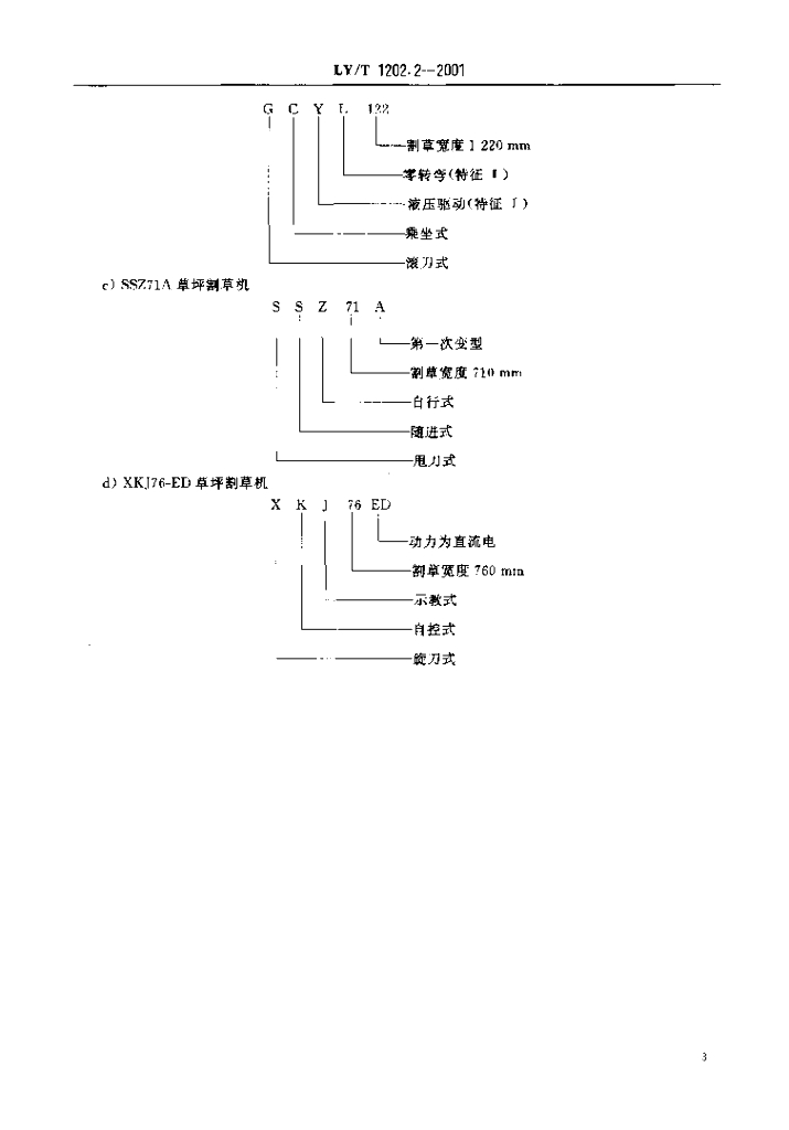 LY/T 1202.2-2001 草坪割草机 型号编制方法