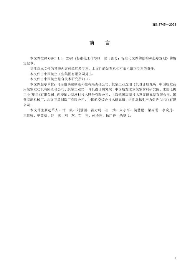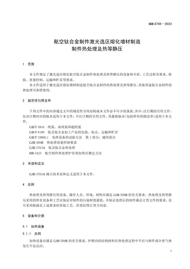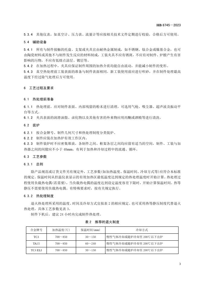 HB 8745-2023 航空钛合金零件激光选区熔化增材制造制件热处理