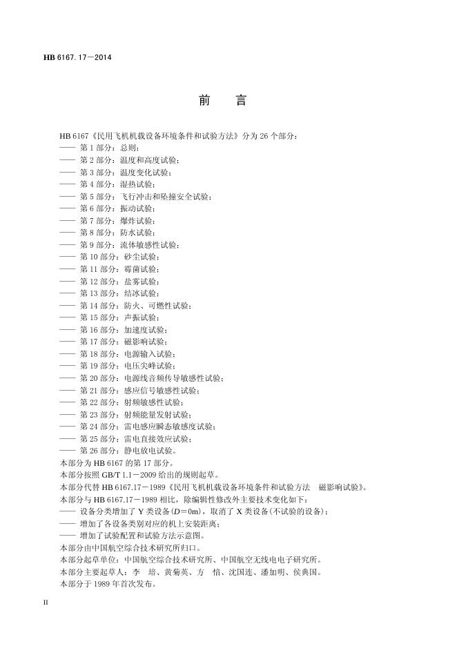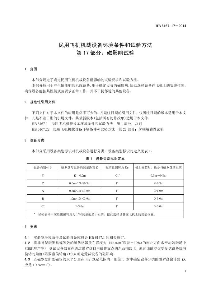 HB 6167.17-2014(2017) 民用飞机机载设备环境条件和试验方法 第17部分:磁影响试验