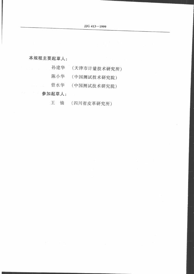 孙建华(天津市计量技术研究所)、陈小华(中国测试技术研究院)、曾水华(中国测试技术研究院)、王铀(四川省皮革研究所)