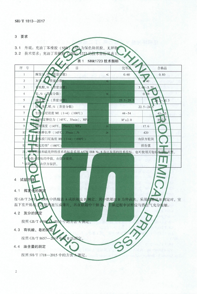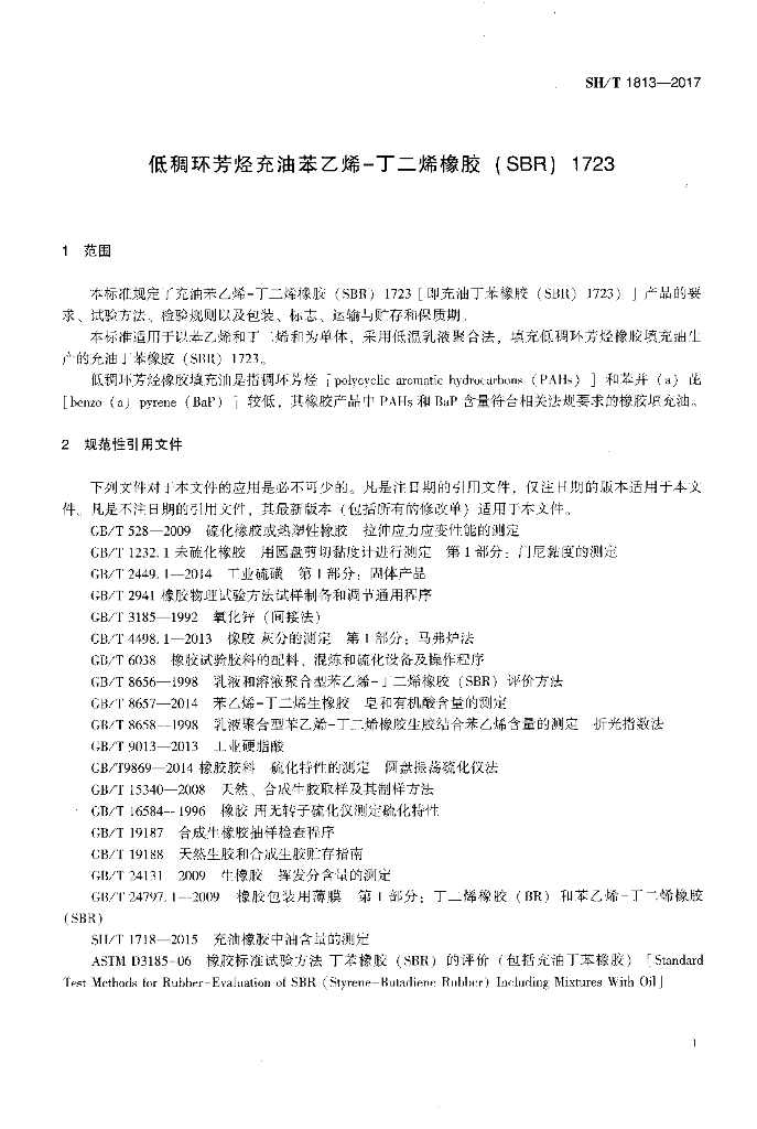 SH/T 1813-2017 低稠环芳烃充油苯乙烯-丁二烯橡胶(SBR)1723