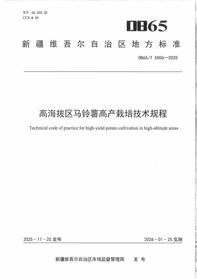 DB65/T 5006-2025 高海拔区马铃薯高产栽培技术规程