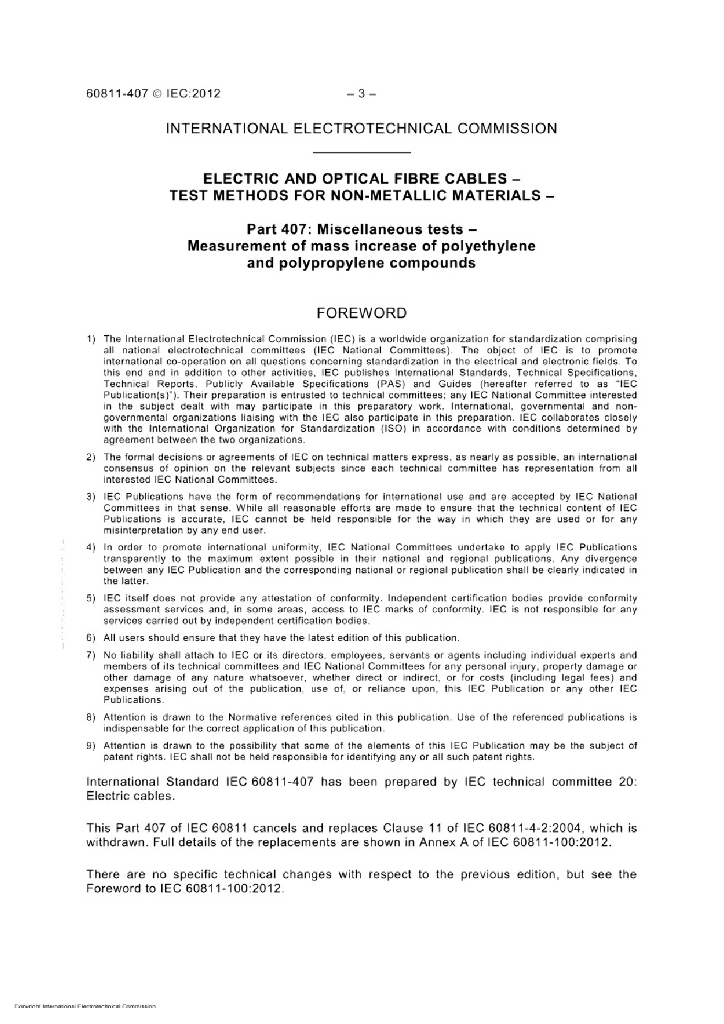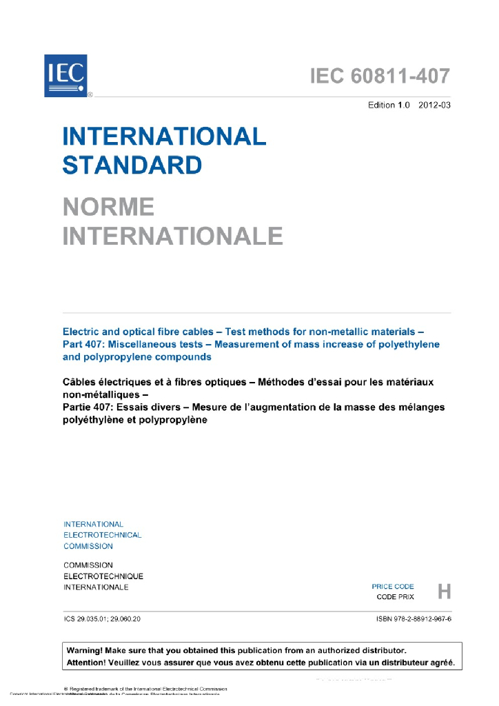 IEC 60811-407:2012 电缆和光缆 非金属材料的试验方法 第407部分:杂项试验 聚乙烯和聚丙烯化合物的质量增加
